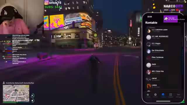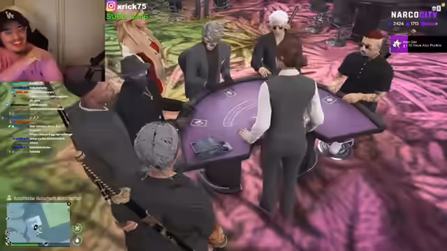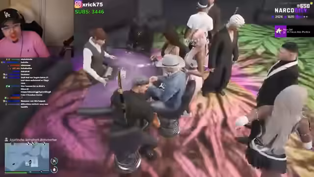 02:46:49Die Stimmung wechselt zu einem musikalischen Event. Kalle startet einen Rap-Battle gegen Hakan, der von Provokationen und persönlichen Beleidigungen geprägt ist. Währenddessen wird Ferdinand gebeten, Musik zu machen, und es gibt Diskussionen über Adlibs und den Ablauf der Show. Der Streamer animiert zum Applaus und sorgt für eine unterhaltsame Atmosphäre, abseits der kriminellen Aktionen.