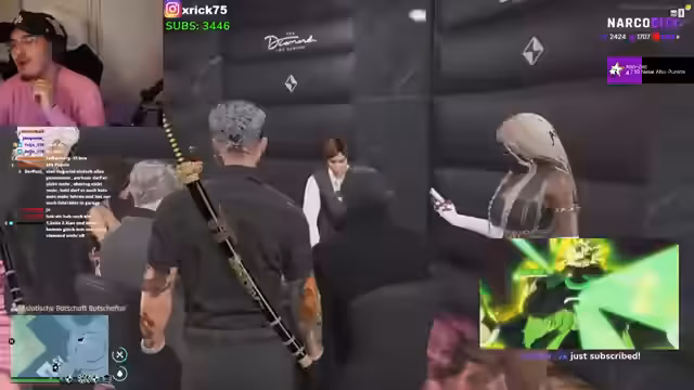 05:37:37Der Streamer erfährt, dass seine Ex-Freundin ihn aus Eifersucht angezeigt haben soll. Eine weibliche Person mit 'sexy Stimme' hat ihn in der Tokyo-Suite gewarnt. Er ist nun verwirrt, ob es seine Ex selbst war oder ob es eine neue Gegnerin ist. Sein Freund Prince ist darüber verärgert und wirft ihm vor, seine Interessen zu verletzen, indem er dessen Ex Diamond datet. Beide reden über die Komplexität ihrer Beziehungen und wie Freundschaften darunter leiden können.