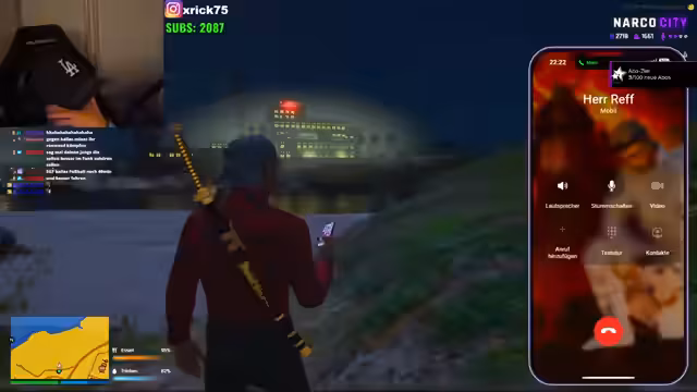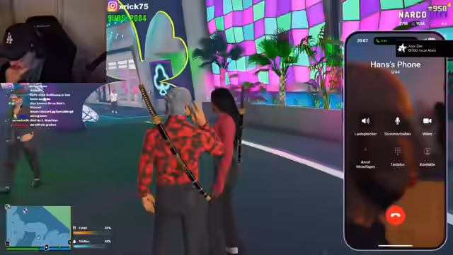 05:03:44Ein dramatischer Höhepunkt ist eine verbale Konfrontation und anschließende Verhandlung mit einer Person namens Xiao. Zunächst wird Xiao beschuldigt, den Streamer gefangen genommen und misshandelt zu haben. Daraufhin wird jedoch ein Deal ausgehandelt. Xiao bietet dem Streamer den Zugang zur Langwaffenroute an, falls dieser im Gegenzug gegen Caravelli vorgeht und dessen Schwachpunkte wie sein Imbissgeschäft, sein Fahrzeug und seine Frau angreift. Der Streamer schlägt vor, gemeinsam gegenseitig Druck auf die jeweiligen Feinde auszuüben, ohne direkt in einen Krieg verwickelt zu sein. Am Ende schließen sie einen formellen Deal und tauschen Gegenstände aus.