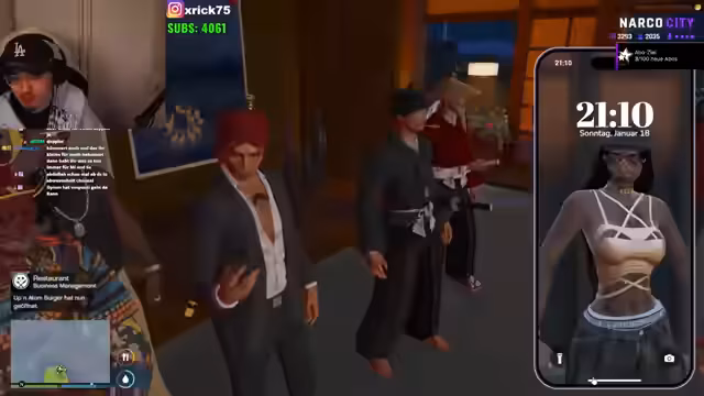 06:06:31Nach dem Gerichtsdrama trifft Kimi auf seinen 'Boss', der ihm viel Aura zuschreibt. Ein weiterer Anruf eines Freundes namens Chao Ling offenbart dessen misserfolgte Flucht aus der Stadt. Der Streamer bittet den Chat um Feedback und erwähnt die Serverprobleme, die das Erlebnis beeinträchtigt haben. Zum Abschluss des 12-Stunden-Streams verabschiedet er sich und geht schlafen.