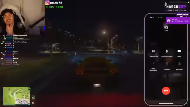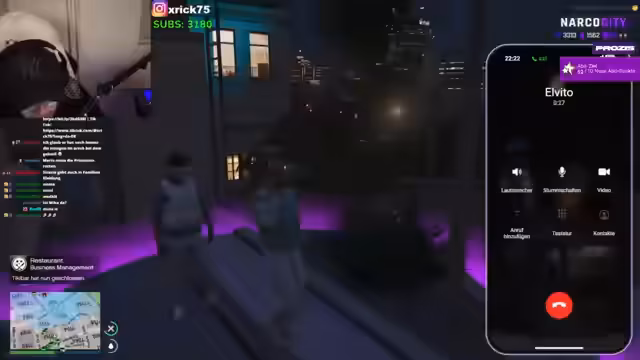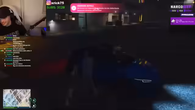 03:11:39Es kommt zu einem abrupten Themenwechsel. Der Streamer erwähnt einen Freund namens JP, der sich im Krankenhaus befindet und von ihm abgeholt werden muss. Gleichzeitig wird eine Konfrontation mit einer weiteren Person namens Marsi-Bierchen geschildert, wobei unklar bleibt, was dieser widerfahren ist. Parallel dazu wird die Dienstleistung eines Taxi-Unternehmens namens Mr. Taxi inszeniert, das eine Person abholen und zu einem Unbekannten bringen soll, was für Verwirrung sorgt.