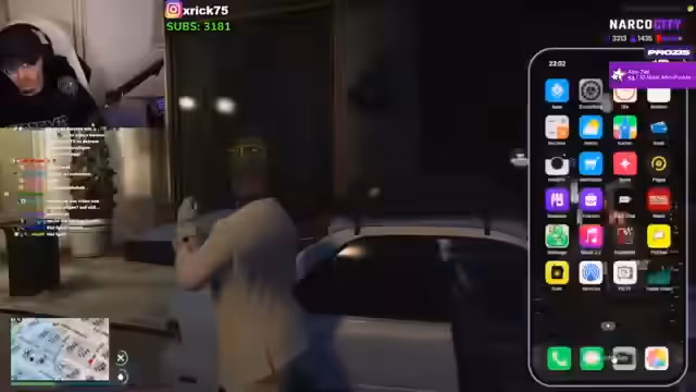 01:50:04Der Streamer schließt ein Waffengeschäft mit einer anderen Familie ab. Er braucht 100 Westen für eine Summe von 650.000 und bittet um Hilfe bei der Lagerung. Parallel dazu baut er eine Partnerschaft mit der 'Sicario' Familie aus, die ihn im Krieg gegen die 'Platz' Familie unterstützen soll. Er sieht diese Allianz als Rückenversicherung und ist der Meinung, dass die Sicario sehr stark sind. Allerdings gibt es bereits Streitigkeiten mit der Platz Familie, bei denen er bereits mehrmals verloren hat.