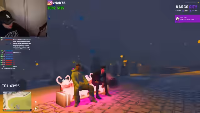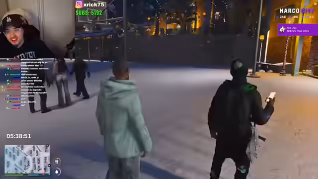 06:54:09In einer angespannten Situation mit Geiseln bemüht sich der Streamer um einen Ausweg. Er hat nur ein Fluchtfahrzeug, einen Urus, und plant einen Angriff auf eine rivalisierende Familie, die zwei Geiseln gefangen hält. Die Verhandlungen gestalten sich schwierig, da die Geiselnehmer harte Forderungen stellen, darunter drei Gefechtspistolen und einen freien Abzug für eine Person. Der Streamer muss diese unerwartet hohe Anzahl an Waffen beschaffen, was den komplexen Fall weiter erschwert.