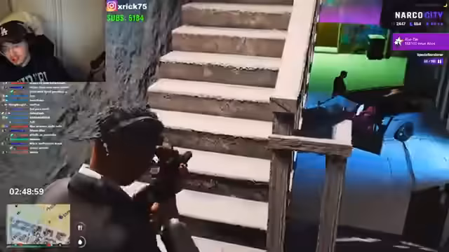 04:00:43Der Stream startet mit einer unkoordinierten Razzia auf ein Ziel, bei der das Team sofort in einen chaotischen Feuergefang gerät. Mehrere Teammitglieder werden aus dem Hinterhalt getötet, was zu großer Verwirrung führt. Der Streamer muss unter Zeitdruck die Lage neu bewerten und versucht, seine verbliebenen Männer zu sammeln, während der Feind aus verschiedenen Richtungen anrückt und weiter auf das Team feuert. Die anfängliche Disziplin ist komplett verloren gegangen und es bricht eine reine Schießerei aus, die mit schweren Verlusten für das eigene Team endet.