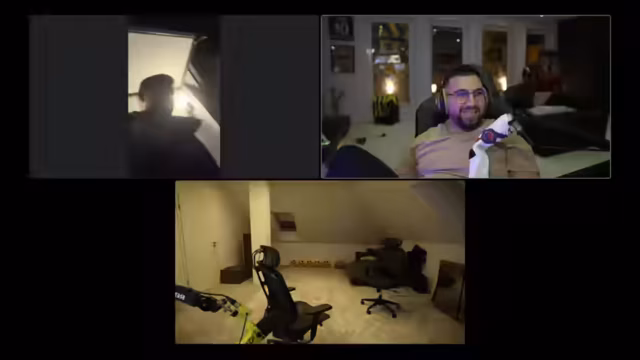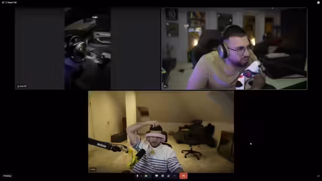 01:59:09Nach den düsteren Szenen im Viertel ändert der Streamer abrupt das Format. Er kündigt ein Segment an, in dem ihm Zuschauer ihre Autos im Discord vorstellen und gemeinsam bewerten sollen. Kurz darauf bricht jedoch ein technisches Chaos aus. Der Streamer sucht panisch nach seiner verlorenen VR-Brille und beschuldigt seine Freunde, sie wegnimmen zu wollen, während gleichzeitig auch die dazugehörigen Controller verschwunden sein sollen. Diese Episode der Verwirrung und des Chaos unterbricht die ernste Thematik vorübergehend komplett.