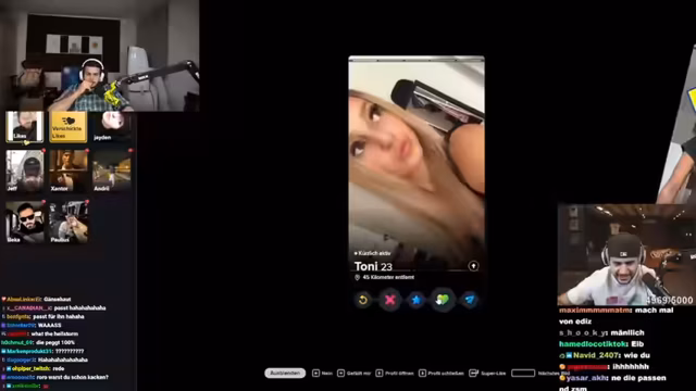 09:23:42Eine interaktive und unterhaltsame Dating-Challenge wird durchgeführt. Der Streamer moderiert eine Runde, in der Roath aus dem Chat vorgeschlagen wird. Mit Hilfe von Hamed werden drei Tinder-Profile von Frauen vorgestellt und analysiert. Die Profile werden auf ihre Seriosität und Attraktivität geprüft, wobei der Streamer den Frauen auf humorvolle Weise Kosenamen wie 'frischeste' gibt. Die Moderation ist unterhaltsam und fördert die Interaktion mit der Community.