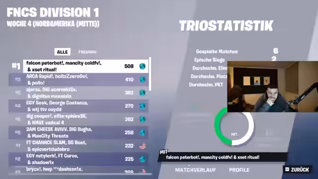 06:55:50Die Stimmung schlägt um, als einer der Streamer, Robert, live mitteilt, dass sein Gaming-Trio ihn kurz vor einem wichtigen Turnier gedroppt hat. Die anderen Teilnehmer versuchen, die Situation zu analysieren und Robert emotional zu stabilisieren. Es wird vermutet, dass der Grund für das Droppen Roberts Fokus auf Streaming ist, während seine Teamkollegen ausschließlich auf den Wettkampf ausgerichtet sind und nicht vor der Kamera spielen möchten. Robert zeigt sich emotional betroffen und frustriert, da er das Gefühl hat, in einer Woche nicht für das FNCS-Turnier vorbereitet zu sein. Die anderen Streamer beraten ihn über mögliche neue Trio-Partner und versuchen, ihm zu helfen, die Situation rational zu bewältigen.