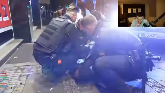 01:02:16Ein Gedankenspiel dreht sich um hypothetische Risikoszenarien, wie eine 20-Millionen-Dollar-Wette mit Überlebenswahrscheinlichkeit. Danach wird ein Video eines Polizeieinsatzes am Bremer Hauptbahnhof gezeigt und kommentiert. Der Clip zeigt eine brutale Kontrolle eines Verdächtigen wegen Drogenhandels und Widerstand gegen die Staatsgewalt. Der Streamer äußert seine Verwunderung über die harte Vorgehensweise der Beamten und kommentiert die Szene live.