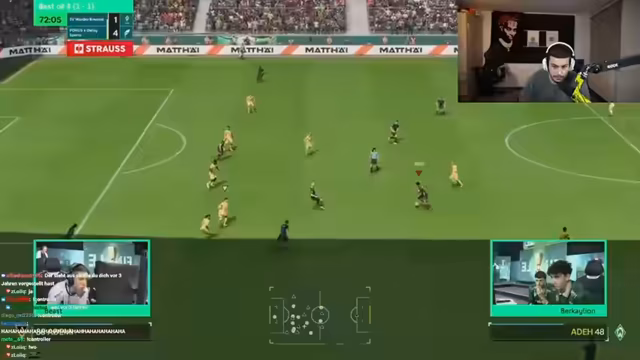 01:35:31Ein neuer Sponsor, 'Parfüm-Dealer', wird vorgestellt, mit dem Code 'DEALER10' für einen Rabatt. Der Streamer, aufgrund seiner Krankheit nicht in der Lage, die Düfte selbst zu riechen, betont die Günstigkeit im Vergleich zu herkömmlichen Parfüms. Anschließend wird ein FIFA 25 DFB-Pokal-Spiel zwischen Berkay und Eldos live kommentiert, bei dem Berkay deutlich mit 8:4 gewinnt und als sehr dominant beschrieben wird. Der Fokus auf die Spieltaktiken und die individuelle Leistung der Spieler wird hervorgehoben.