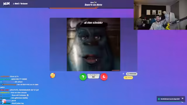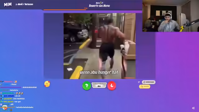 04:10:09Ein bestimmtes Meme wird als „geisteskrank“ und „sehr gut“ gelobt, wobei die Urheberschaft Philo zugeschrieben wird. Es entsteht eine Diskussion darüber, wie schnell Memes erstellt werden müssen und ob bei bestimmten Vorlagen Ideen fehlen. Die Stimmung ist ausgelassen, auch wenn einige Witze als unangenehm empfunden werden. Es wird über die Möglichkeit gesprochen, englische Texte in Memes zu ändern, was manchmal möglich ist und manchmal nicht. Zudem wird Ali darauf hingewiesen, dass sein Mikrofon zu sensibel eingestellt ist und angepasst werden sollte, um die Audioqualität zu verbessern, insbesondere im Vergleich zu Discord- oder RP-Einstellungen.