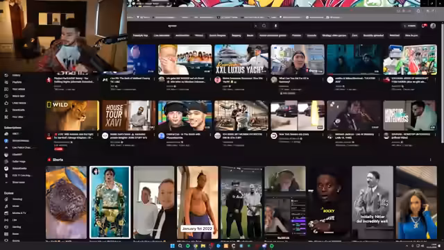 00:01:56Der Streamer spricht über ein misslungenes Thumbnail auf seinem YouTube-Kanal, das von Dorian erstellt wurde und einen Screenshot aus Discord zeigt. Er findet es respektlos und das schlechteste Thumbnail auf YouTube. Danach wechselt er zum Thema Fortnite und kündigt an, dieses zu spielen. Er schaut sich Twitter an und kommentiert humorvoll verschiedene Posts, darunter ein Bild mit einem großen Ausschnitt und Vergleiche mit Detlef D! Soost. Er reagiert auf diverse Inhalte, wobei er einige als 'too far' einstuft. Es wird über Essen gesprochen und ein Wu-Tang-Shirt gezeigt. Der Streamer spricht über TikTok und dessen Bedeutung für Newcomer-Künstler, wobei er schätzt, dass 90% ihren Durchbruch TikTok zu verdanken haben. Er erwähnt Künstler wie Lone, Ken, Cardi und Deutschrapper, die durch TikTok populär wurden. Abschließend erwähnt er, dass er seitdem er TikTok nutzt, weniger neue Musik hört und lieber Musik aus dem Jahr 2018 hört.