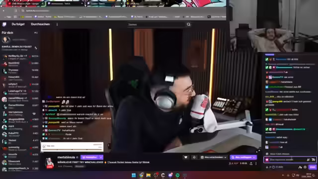 00:00:26Es wird eine 'First Try Challenge' gestartet, bei der verschiedene Spiele in einem Durchgang beim ersten Versuch gewonnen werden müssen. Die Reihenfolge der Spiele ist Fall Guys, League of Leech, Valorant und Warzone. Sollte ein Spiel nicht beim ersten Versuch gewonnen werden, muss von vorne mit Fall Guys begonnen werden. Der Schwierigkeitsgrad wird hervorgehoben, insbesondere wenn man mit Warzone beginnt und dann scheitert. Es wird überlegt, wer bei einem Ausstieg aus der Challenge mit 50 Subs 'bestraft' wird, wobei die anderen entscheiden, wo diese Subs hingehen. Es wird auch überlegt, ob Yusuf, der ebenfalls teilnimmt, Beef mit jemandem in GTA hat, was bei der Entscheidung berücksichtigt werden könnte, wem die Subs zugesprochen werden.