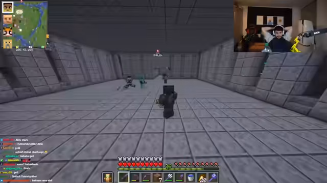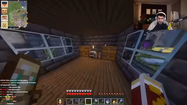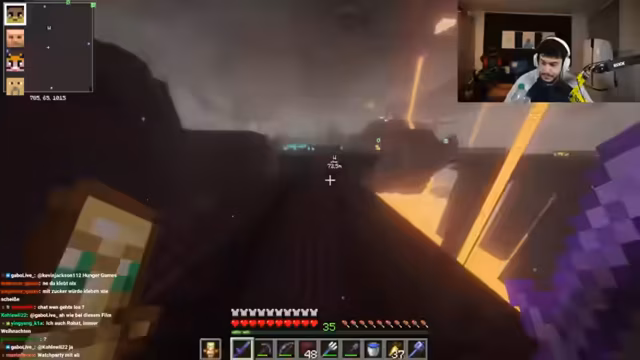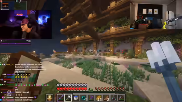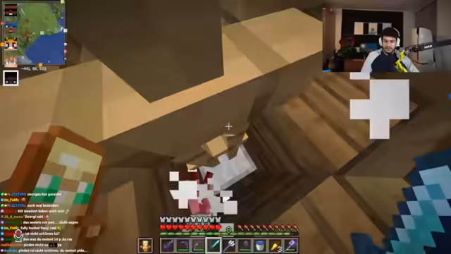 08:44:07Ein Spieler beklagt die ständige Präsenz eines anderen auf dem Server und schildert seine langen Streamzeiten. Eine Diskussion über den Besitz einer Rüstung entbrennt, bei der der Besitzer die Rückgabe fordert und ein anderer Spieler versucht, mit Enderperlen einen Wünscher zu täuschen. Im weiteren Verlauf geht es um einen unfairen Tötungsversuch, die Klage von Möhrenklau und die Notwendigkeit von Netherit-Rüstung. Die Stimmung ist von gegenseitigem Misstrauen und chaotischen Interaktionen geprägt.
