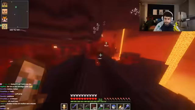 02:32:01Die Aktivitäten im Nether konzentrieren sich auf die Suche nach Festungen, da diese eine höhere Spawnrate von Ruderskeletten bieten, welche für das Spielziel notwendig sind. Streamer und Teilnehmer erkunden das Biom systematisch, um die benötigten Ressourcen zu farmen. Dabei wird die Position von Festungen und Spauern diskutiert und Pläne für das gemeinsame Vorgehen besprochen.