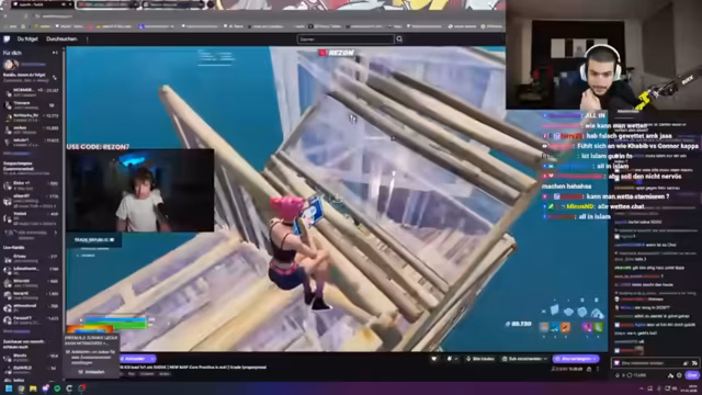 01:41:56Während des Wettkampfs wird auf den Kontrahenten von Islam, Reason, eingegangen. Es wird erwähnt, dass dieser als einer der besten Fortnite-Spieler Deutschlands gilt. Zeitgleich findet eine Diskussion über andere Streams und Kontroversen statt, wie zum Beispiel über einen Streamer namens Ali, der mit okkulten Symbolen in Verbindung gebracht wird. Der Streamer fordert eine tiefe Analyse dieser Thematik, was auf einen zeitgleichen Konversationsstrang hindeutet, der parallel zum Wettkampf stattfindet.