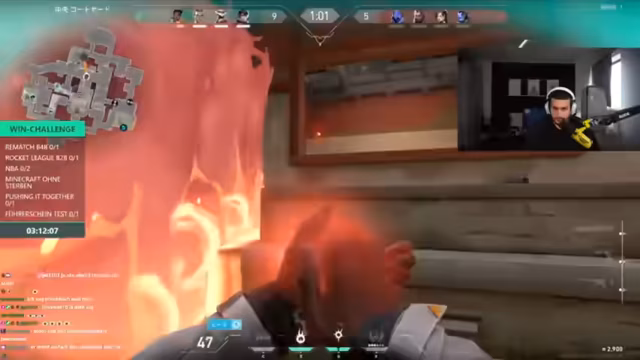 00:28:01Das Gameplay in Valorant wird intensiv und erfordert ständige Kommunikation. Der Streamer gibt präzise Anweisungen wie "K.O. ist A", "smoke bei mir" und "alle C, alle C". Es werden Entscheidungen getroffen, wer als Köder dient und wer in Deckung geht, während das Team seine Gegner beobachtet und deren Bewegungen antizipiert. Trotz guter Strategien und einzelner Erfolge wie "Double-Headshots" verliert das Team die Runde, was zu Frust und der Analyse des Spielverlaufs führt.
