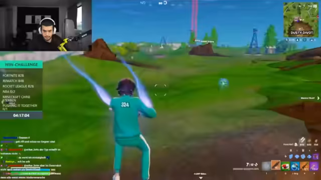 02:07:14Das Fortnite-Spiel ist von hohem Tempo und chaotischen Situationen geprägt. Der Streamer gibt taktische Befehle wie "nehmt die Rifts", "rotieren" und "geht in den Center", während die Gegner geortet und attackiert werden. Trotz guter Ausrüstung und strategischer Manöver wie dem Werfen von Taschenmuschis verlieren sie das Duo. Die Stimmung ist gemischt aus Frust über die Niederlage und dem Wunsch, ein Back-to-Back-Spiel zu spielen, um die Challenge zu meistern.
