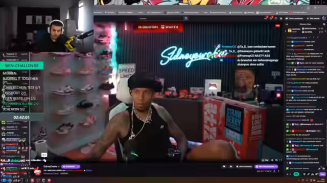 02:40:41Die Stimmung kippt, als ein Streamer erklärt, es sei kein Spaß mit der Gruppe, noch nie gewesen. Die Team-Dynamik steht unter Druck, insbesondere als sie in eine 2-2 Situation geraten. Ein Spieler, 'der kleine Schleimmann', wird für sein riskantes Verhalten kritisiert. Die Gegner scheinen die Taktiken des Teams zu kennen, was die Situation noch schwieriger macht. Ein Spieler beschließt, das Spiel zu verlassen, um sein Essen zu holen, was das weitere Vorgehen ungewiss macht.
