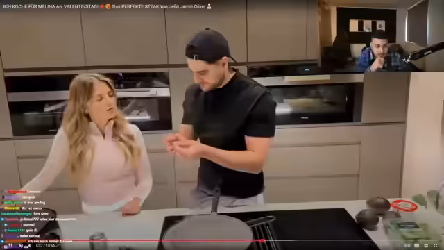 00:22:08Ein weiterer Hauptteil des Streams ist ein langes Kochsegment, in dem der Streamer ein Valentinsdinner für seine Freundin Melina zubereitet. Er kocht Rindfilet-Steaks, Süßkartoffelpommes und Spiegeier und erklärt dabei ausführlich die Zubereitungsschritte. Er betont, dass Kochen für ihn Gefühl und Leidenschaft ist, und wirbt dabei für eine gemeinsame Rezept-App, die er mit Ada entwickelt hat, die bereits über eine halbe Million Downloads hat.