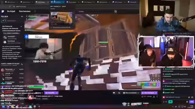 00:34:36Der Streamer schaltet zum großen Finale des Fortnite Champion Series (FNCS) um, bei dem es um ein Preisgeld von 800.000 Euro geht. Er folgt dem deutschen Team um Vico und Vadial, das als Favorit gilt. Kommentiert live die Spielzüge, kritisiert andere Teams für ihre Drop-Strategien und äußert seine große Unterstützung und Erwartungshaltung. Die Spannung steigt, als sich Top-Teams wie das französische Queezy und Kami früh ins Spiel bringen und die erste Runde für sich entscheiden.