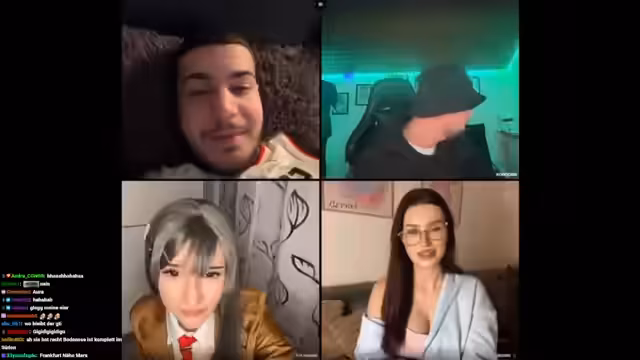 03:28:42Die Aufmerksamkeit richtet sich auf eine neue Person namens Nana im Stream. Nana stellt sich als Cosplayerin vor, die sich auf Anime-Charaktere spezialisiert hat und in der Nähe von Stuttgart lebt. Die Unterziehung wird sehr persönlich und detailliert, mit Fragen über ihr Alter, ihre Herkunft, ihren Humor und ihr Aussehen. Nana berichtet von ihrer Obsession mit dem Streamer Hugo und teilt eine persönliche Anekdote über ein Parasocial-Verhältnis, das sie hatte und das sie mittlerweile hinter sich gelassen hat.