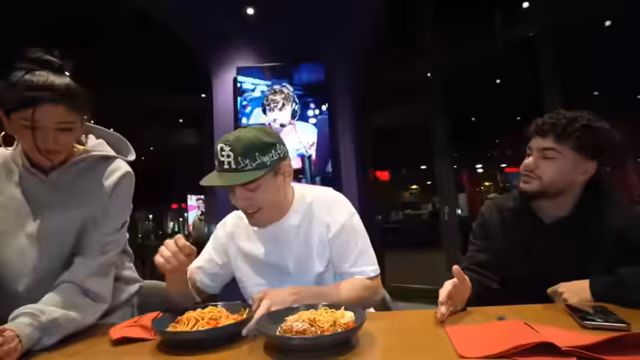 01:26:49Die Streamer führen ein unkonventionelles Kochduell durch, bei dem sie gegenseitig ihre Gerichte probieren und bewerten werden. Einer der Streamer betont, dass er gewonnen habe und der andere sich als Verlierer geschlagen geben solle. Die Kommentare des Chats sind teilweise derb und beleidigend, was von den Streamern mit Humor quittiert wird. Die Bewertung der veganen Hack-Pasta fällt unterschiedlich aus, wobei einer als fairer Gewinner hervorgeht, während der andere seine Niederlage akzeptiert und sich als Gutverliererin bezeichnet.