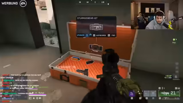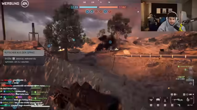 01:12:32Nachdem das Multiplayer-Spiel in Battlefield für den Streamer zu unattraktiv wurde, weil es zu viele Bots enthielt, wechseln er und sein Mitspieler Edis in den Battle-Royale-Modus. Während des Streams müssen sie grundlegende Gameplay-Mechaniken wie das Plätten und Ausrüsten neu erlernen. Das Spiel endet frühzeitig, da der Streamer eliminiert wird und die Runde für ihn beendet ist, was ihm einen leichten Frust verursacht.