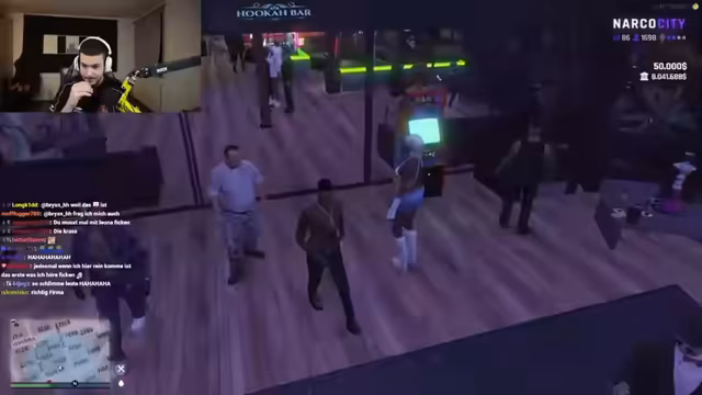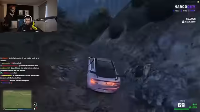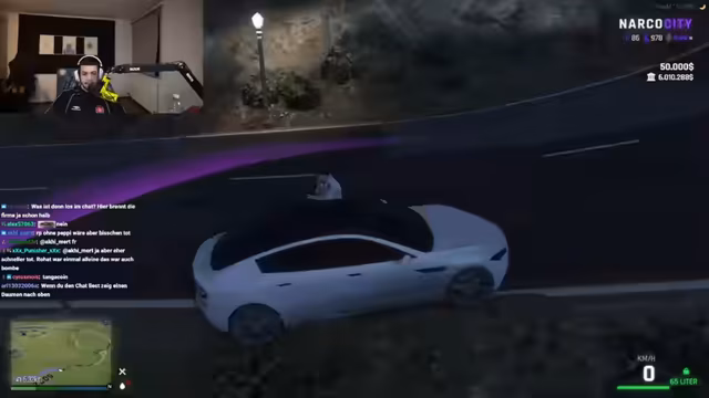01:44:59Während des Streams wird eine Verfolgungsjagd inszeniert, bei der der Streamer ein Auto gewinnen möchte, um die Telefonnummer einer Frau zu bekommen. Dies mündet in eine szenische Präsentation eines Jackpots. Nachfolgend wird eine politische Demonstration inszeniert, bei der der Streamer eine Person namens Breitenberg vorfindet, der die Abschiebung von Arabern fordert. Der Streamer stellt sich auf die Seite der Araber und gibt an, von ihnen gefangen genommen worden zu sein.