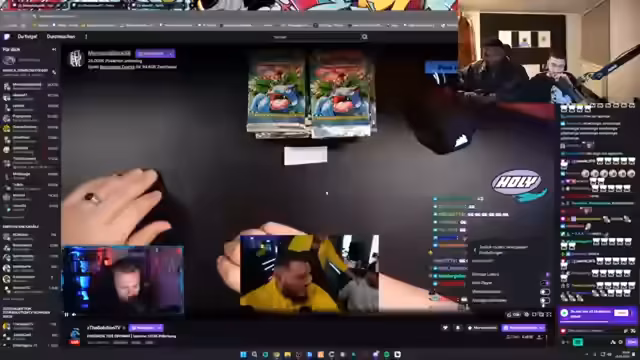 01:23:31Der Stream beginnt mit der Eröffnung von Pokémon-Packs aus einem neuen Set. Es werden die verschiedenen Kartenvarianten vorgestellt, darunter auch eine Reverse-Karte mit einem Pokéball, die neu im Set ist. Einige Karten werden als teuer oder rare identifiziert, wie zum Beispiel ein Meisterball. Der Fokus liegt auf der Besichtigung der Karten und dem Staunen über deren Design und Seltenheit. Ebenso werden mögliche Unboxing-Techniken wie das Aufschneiden der Packungen mit einer Schere diskutiert.