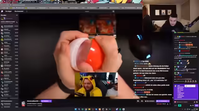 03:56:20Der Streamer interagiert mit den Chat-Teilnehmern und den anderen Streamern im Call, wie Metashi, Micky und Sascha. Es werden Namen von Teilnehmern wie Karsten und Unruhig genannt, die bei den Pokémon-Openings mitmachen. Der Streamer betont die Ehrlichkeit unter den Teilnehmern und hebt hervor, dass jeder für sich zieht, um die Spannung zu erhalten und Spoiler zu vermeiden. Auch ein Münzwurf von Micky wird erwähnt, um die Reihenfolge der Öffnungen zu entscheiden.