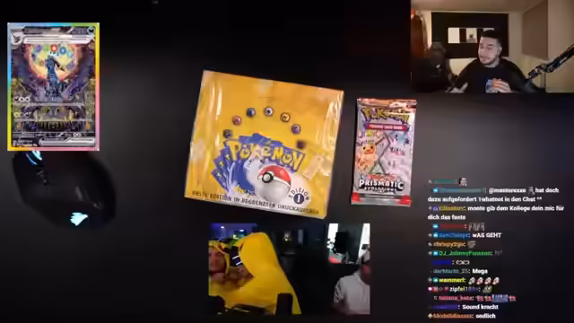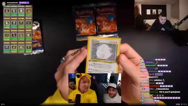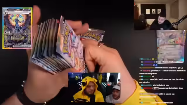 02:33:53Der Stream beginnt mit der Eröffnung mehrerer Boosterpacks, bei denen anfangs eine ungewöhnlich hohe Anzahl an Trainerkarten gezogen wird. Dies weckt sofort den Verdacht, dass die Packes möglicherweise manipuliert sind, was auf den frühen Hinweis bezüglich der Seltenheit zweimal identischer Karten begründet ist. Das Streamer-Team diskutiert intensiv über die Möglichkeit von Resealed Packs oder anderen Betrugsmethoden und erwähnt die Möglichkeit, dass schwere Packs durch das Wiegen identifiziert und für wertvollere Karten ausgetauscht worden sein könnten.