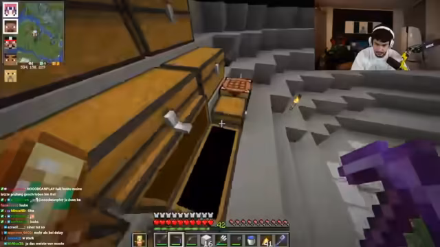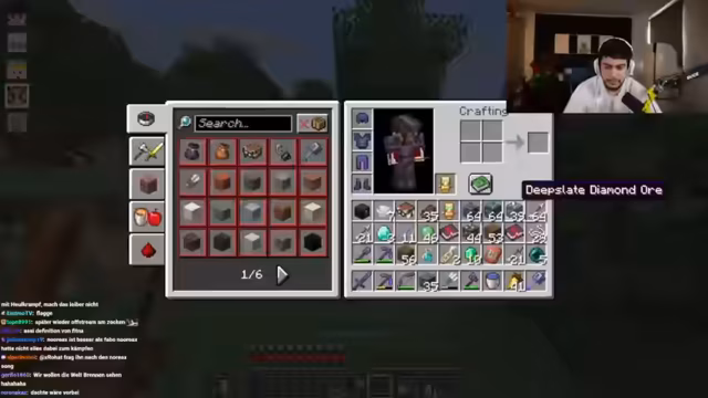 03:37:29Der Streamer befasst sich intensiv mit der Beschaffung von Ressourcen, insbesondere Holz, und sucht aktiv nach einem TAF (Trichterabschussfalle). Er erkundigt sich nach der optimalen Lokalisation im Deepslate und unternimmt den Versuch, eine TAF zu bauen, stellt aber fest, dass ihm dafür die notwendigen Materialien fehlen. Nach Rücksprache mit Chat und einer Vorführung durch einen Teilnehmer wird das Prinzip der TAF verstanden und der Bau initiiert. Die Suche nach Materialien, insbesondere nach Glas und Quarz für die Konstruktion, steht dabei im Fokus.
