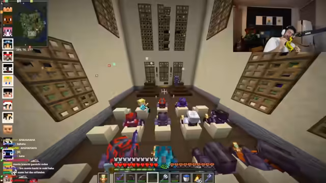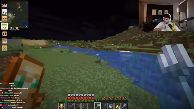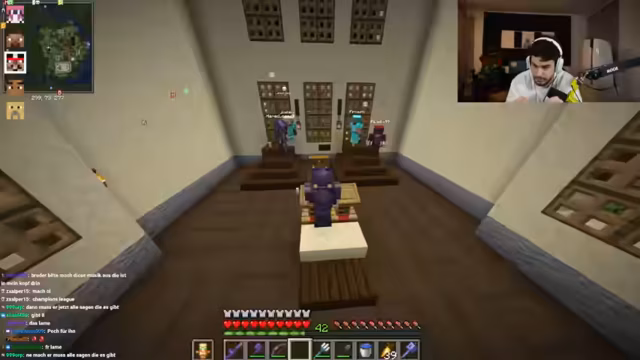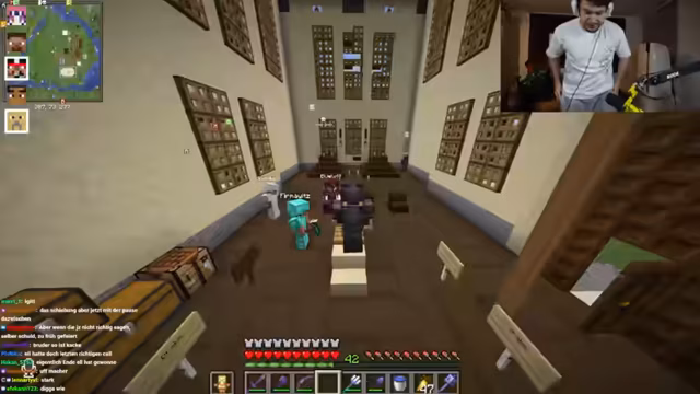 05:48:50Zurück im Minecraft-Server wird ein Spieler von einem anderen, Ali, beschuldigt, dessen Haus angreifen zu wollen. Es entwickelt sich eine Diskussion über Sinn und Langeweile des langzeitigen Spielens. Ein Teilnehmer äußert, dass er keine Lust mehr habe und nur noch herumlaufe. Der Streamer berichtet von seiner hohen Anspannung und spricht über die Belastung durch den langen Stream und die Interaktion mit der Community.
