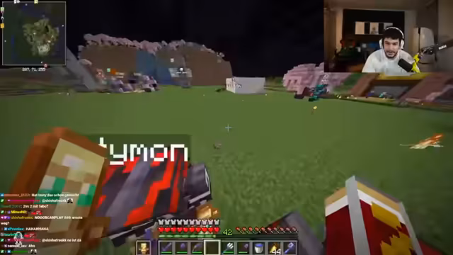08:11:15Im Stream werden diverse Projekte und Ideen besprochen. So plant der Streamer, eine riesige Pyramide zu bauen und erkundigt sich dabei nach den Regeln für Safe Zones. Es kommt zu technischen Unstimmigkeiten bezüglich der Chunks und des Fliegens mit der F4-Taste. Des Weiteren wird der Kampf um einen verzauberten Dreizack thematisiert, auf den es lange gewartet wurde.