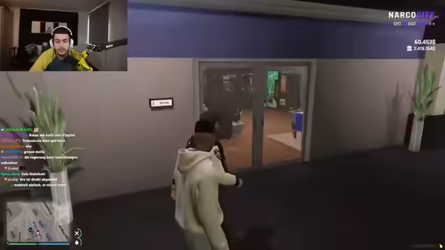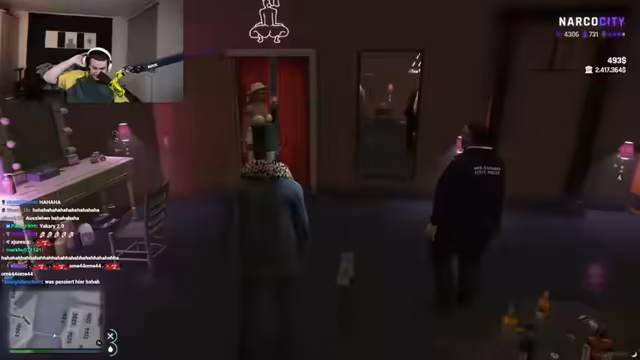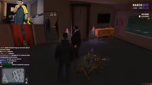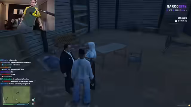01:48:14Ein neuer Handlungsstrang im Rollenspiel beginnt. Der Streamer, der sich als 'Sosa' ausgibt, sucht den Manager JJ auf. Das Gespräch wird schnell komisch und unorganisiert, da der Streamer den Namen seines Mitarbeiters vergessen hat. Nach einigen irritierenden Fragen nach 'Dildos' und dem Erkennen falscher Identitäten, wird deutlich, dass es hier um ein persönliches und chaotisches Management-Thema geht, bei dem vermutlich Kontakte und Geschäfte im Einklang mit der fiktiven Welt von 'Santana' geregelt werden sollen.