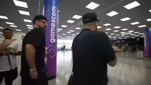 00:29:46Die Streamer beschließen, ihren Freund Ronny Berger zu finden, der ihnen eine Ansage gemacht hatte. Sie durchsuchen die Gamescom systematisch nach ihm und verlieren ihn mehrmals aus den Augen. Sie treffen auf Edis, einen anderen Creator, der Ronny Berger sucht, weil dieser ihm gedroht hatte. Die Situation ist angespannt, aber schließlich finden sie Ronny Berger am Bundeswehrstand.