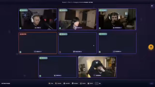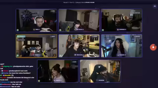 02:02:34Der Streamer kündigt den Beginn des Spiels "Streamer Imposter" an, bei dem sechs Teilnehmer einen Streamer-Namen erhalten und einer der Imposter ist. Ziel ist es, den Imposter zu identifizieren, indem jeder Spieler eine Eigenschaft des Streamers nennt, ohne zu offensichtlich zu sein. Der Imposter gewinnt, wenn er das Wort errät, bevor er entlarvt wird. Die erste Runde startet mit der Kategorie "Beruf", wobei das Wort "Richter" ist. Fabo beginnt mit dem Wort "Praktikum", was sofort als zu offensichtlich kritisiert wird. Weitere Begriffe wie "Perücke", "Häftling" und "Präzedenzfall" werden genannt. Es kommt zu Diskussionen über die Regeln und die Möglichkeit, den Imposter sofort zu voten, wobei technische Probleme mit dem Abstimmungsknopf auftreten. Es wird entschieden, dass das Voting erst nach zwei Runden möglich ist.