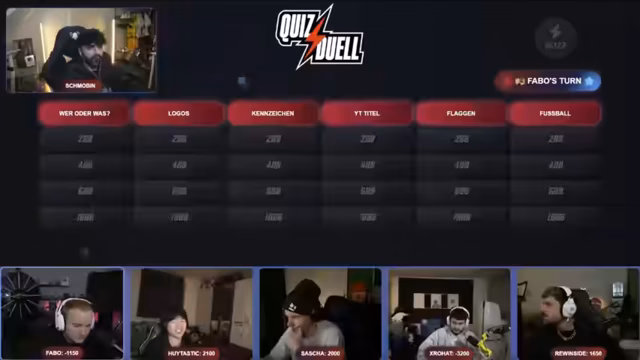 00:25:30Das Quiz beginnt mit der Ankunft von Huia und Sascha. Kroko konnte leider nicht teilnehmen, und Revi wird erst zum zweiten Format dazustoßen. Sascha und der Streamer freuen sich über das Wiedersehen nach langer Zeit. Es wird über eine Distressed Camo-Jacke aus Saschas Shop gesprochen, die er gerne zum Skifahren tragen würde. Technische Probleme mit den Kameras und dem Overlay werden behoben, um alle Teilnehmer sichtbar zu machen. Die erste Kategorie des Quiz sind Staaten der USA. Huia beginnt mit New York, gefolgt von Kalifornien (Sascha) und Nevada (Rohat). Fabo nennt Florida, und der Streamer Wyoming. Fabo scheidet aus, da er Orlando nennt, was eine Stadt und kein Staat ist. Weitere Staaten wie Texas, New Mexico, Arkansas, Mississippi, Washington, Colorado, Oregon, Iowa, Illinois, South Carolina, North Dakota, North Carolina, Delaware, Michigan, Idaho und Connecticut werden genannt. Die zweite Kategorie sind die meistgesehenen Spiele auf Twitch der letzten sieben Tage. Minecraft, Just Chatting, Fortnite, League of Legends, Valorant, IRL, Counter Strike und World of Warcraft werden genannt, während Mario Kart und Rocket League als falsch bewertet werden. Die dritte Kategorie sind Valorant Agents, bei der Rainer, Raze, Jet, Neon, Phoenix, Cypher, Omen, Deadlock, Chamber, Brimstone, Sage, Sova, Gecko, Harbor, Fade und ISO genannt werden. Killjoy, K.O., Viper und Yoru werden später ergänzt. Die vierte Kategorie sind EU-Länder, bei der Deutschland, Italien, Frankreich, Spanien, Portugal, Polen, Niederlande, Dänemark, Österreich, Luxemburg, Belgien, Schweden, Bulgarien und Finnland genannt werden. Die Schweiz und Norwegen werden fälschlicherweise genannt. Die letzte Kategorie sind Charaktere aus Mario Kart, bei der Mario, Luigi, Bowser, Peach, Donkey Kong, Yoshi, Waluigi, Wario, Knochentrocken, Baby Mario, Baby Luigi und Shy Guy genannt werden. Zelda wird fälschlicherweise genannt. Hui gewinnt das erste Quiz, gefolgt von Fabo und Sascha auf dem zweiten Platz, während Rohat Letzter wird. Ein zweites Quiz mit doppelten Punkten wird angekündigt, bei dem Revi aufgrund von Stau nur am letzten Spiel teilnehmen kann. Technische Probleme mit dem Overlay werden erneut besprochen, und es wird empfohlen, die Hardwarebeschleunigung im Browser zu aktivieren.