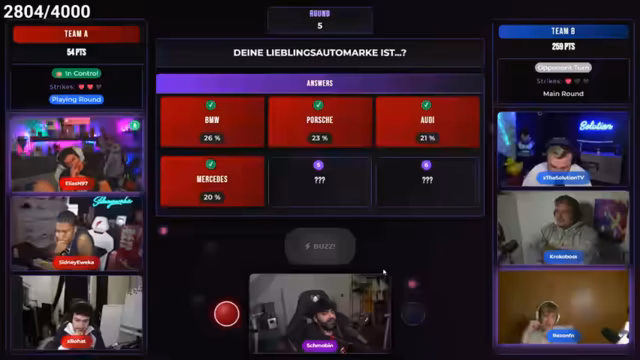 03:31:14Der LiveStream setzt sich mit einer weiteren Runde des Quiz fort, bei der die Teilnehmer die beliebtesten Automarken erraten müssen. Nach anfänglichen Schwierigkeiten und falschen Annahmen wie Lamborghini, das nicht in den Top 6 vertreten ist, werden Marken wie Mercedes (Platz 4), BMW (Platz 1) und Audi (Platz 3) korrekt identifiziert. Die Spannung steigt, als Porsche auf Platz 2 landet. Die Diskussionen unter den Teilnehmern sind lebhaft, da sie versuchen, die verbleibenden Marken zu erraten, wobei Vorschläge wie Tesla, Ferrari (Platz 5) und sogar Bugatti oder Rolls Royce fallen. Die Schwierigkeit des Spiels wird offensichtlich, als selbst gängige Marken nicht in den Top-Listen erscheinen, was zu Frustration und humorvollen Kommentaren führt. Die Runde zeigt die Herausforderung, die Präferenzen der Community korrekt einzuschätzen, insbesondere wenn unerwartete Marken wie McLaren in der Top-Liste auftauchen, während andere, vermeintlich populärere, fehlen.