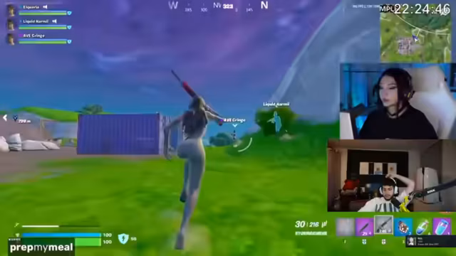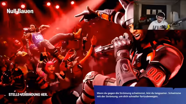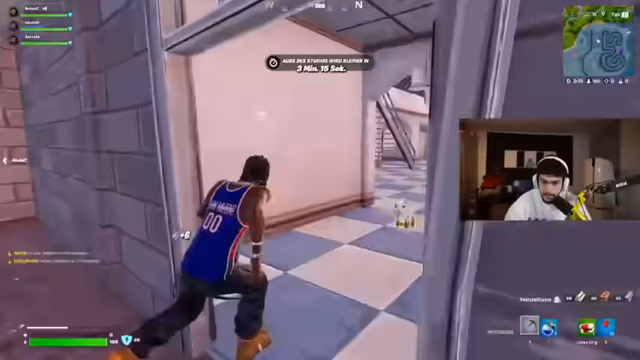 03:17:02Der Fokus verschiebt sich auf das Spielen von Fortnite. Das Team beginnt mit dem Sammeln von Loot und tauscht Waffen wie goldene Miniguns und Pistolen aus. Es wird strategisch ein Jump Pad platziert und über die Bewegungen in der Karte diskutiert, um der nächsten Zone entgegenzueilen. Der Streamer betont die Wichtigkeit von Bunkern und Heilmitteln und versucht, seine Ausrüstung optimal zusammenzustellen, während das Team durch verschiedene Gebiete wie Salty Springs und Dusty Depot zieht und nach besserer Ausrüstung sucht.