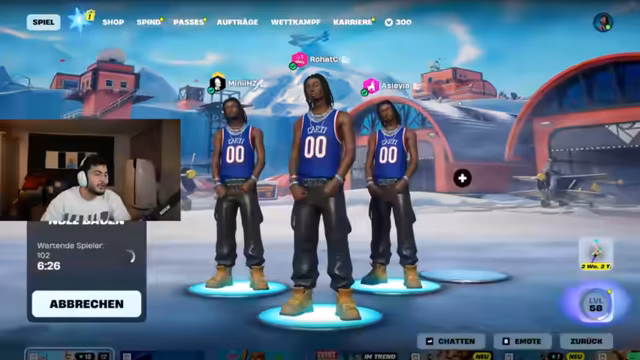 02:35:11Die Aufmerksamkeit verlagert sich auf die spezifischen Regeln des Turniers. Es ist ein Null-Bauen-Cup, bei dem die Teilnehmer mit Pistolen spielen dürfen und bestimmte Waffen wie Granaten oder Geschütze verboten sind. Um den eigenen Pro-Status zu verschleiern, beschließt das Team, sich mit denselben Skins auszustatten. Technische Probleme beim Hinzufügen von Freunden über das Epic Games-Netzwerk und der Austausch von In-Game-Namen bereiten Schwierigkeiten. Letztlich gelingt es jedoch, die notwendigen Anfragen zu versenden und sich für das Turnier vorzubereiten.