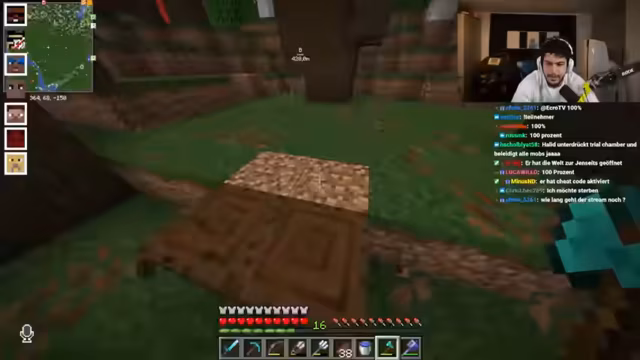 15:33:20Nach dem stressigen Dungeon-Einsatz plant der Streamer, Ressourcen zu farmen, insbesondere um eine Amadellus-Farm einzurichten, was jedoch den Nether voraussetzt. Er gibt zu, dass dies aufwändig ist und bittet andere Spieler um Hilfe bei der Erkundung von Höhlen. Er stellt die Frage, ob jemand mit ihm in eine Höhle gehen möchte, um zu chillen und Ressourcen zu sammeln, da er noch keine Diamant-Rüstung besitzt und somit für größere Abenteuer noch nicht bereit ist.