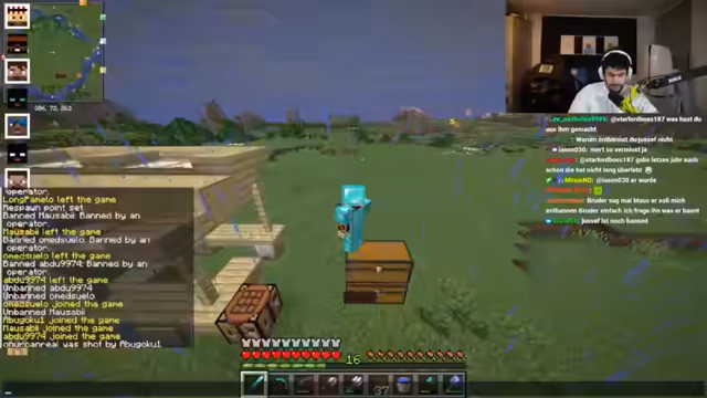 00:37:21Der Streamer beschäftigt sich intensiv mit dem Kopfgeld-System auf dem Server. Er bittet den Chat um Hinweise auf den Aufenthaltsort eines bestimmten Spielers, den er für 15 Diamanten jagen soll. Er äußert seine Entschlossenheit, dieses Ziel zu eliminieren, und spricht von einer "Rage-Farm", um Ressourcen zu beschaffen. Gleichzeitig diskutiert er mit Teammitgliedern über den geplanten Angriff und koordiniert die Aktionen. Er stellt in Frage, ob es strategisch sinnvoll ist, im Spawn-Bereich zu bauen, und befürchtet ständige Angriffe, wenn alle ihre Häuser dort errichten.