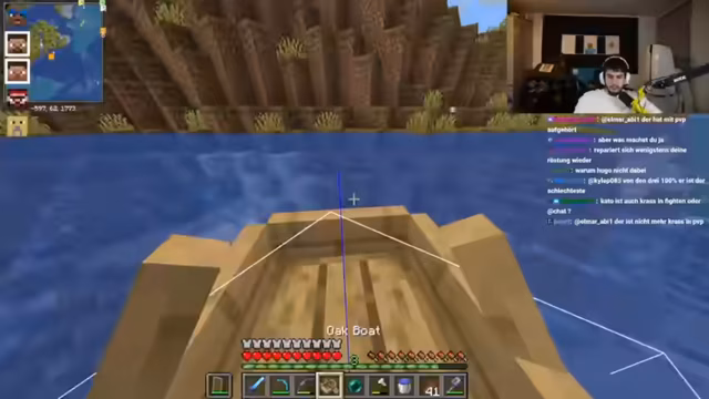 14:25:33Die Stimmung im Stream verschärft sich, als es zu einer Auseinandersetzung zwischen Spielern, insbesondere Abo Goku und dem Streamer, kommt. Es geht um gegenseitige Vorwürfe und Tätlichkeiten im Spiel. Abo wird vorgeworfen, seit neun Jahren nichts gebaut zu haben und stattdessen nur andere Spieler zu stören. Die verbale Eskalation spitzt sich zu, als der Streamer droht, Abo zu ficken, und Abo ihn beschuldigt, ihn angegriffen zu haben. Die Situation wird durch Spiel-Interaktionen, wie das Zerstören von Abo's Boot, weiter angeheizt, was zu seinem virtuellen Tod führt.