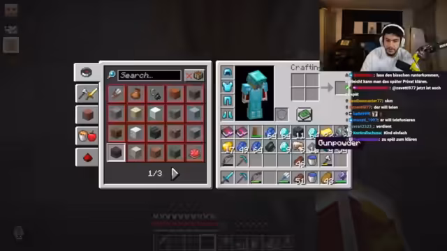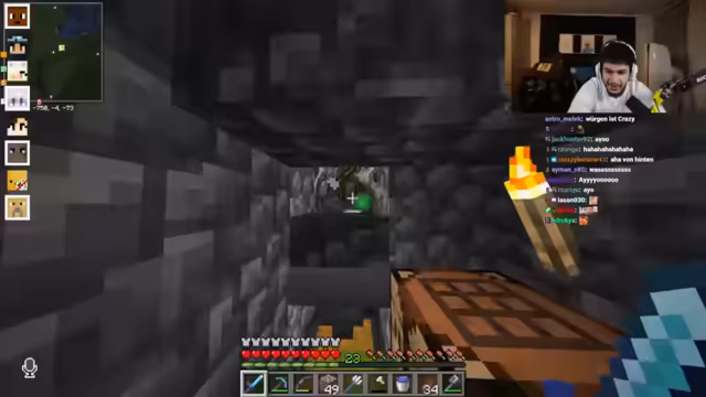 15:28:28Der Streamer und seine Mitspieler begeben sich in einen gefährlichen Dungeon im Nether, um einen letzten verbliebenen Gegner zu besiegen. Der Gegner ist laut Streamer unsichtbar und erschreckt seine Opfer mit Geräuschen. Nachdem seine Verbündeten bereits eliminiert wurden, ist der Streamer auf sich allein gestellt. Er versucht, den Gegner durch das Abbau von Blöcken anhand der Geräuschquellen zu finden, während er mit den Nachteilen seines technischen Setups kämpft, insbesondere einer Verzögerung.