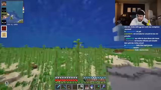 02:21:05Der Stream zeigt ein starkes Kooperationsverhalten bei der Ressourcenbeschaffung. Teilnehmer tauschen sich aus, helfen sich beim Bau von Farmen und teilen wertvolle Gegenstände wie Diamanten und Rüstungsteile. Es wird eine systematische Vorgehensweise diskutiert, um effizienter zu werden, indem man unter anderem Wolle zur Geräuschdämmung einsetzt. Das Ziel ist, das gesamte Team mit Ausrüstung zu versorgen.
