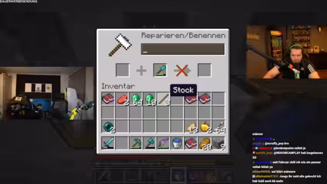 06:47:13Die Streamer stoßen auf erhebliche technische Probleme, die den Ablauf stören. Sie haben Schwierigkeiten, ihre Ausrüstung zu reparieren, und verlieren dabei wertvolle Gegenstände. Die Suche nach bestimmten Gegenständen wie Reparieren-Enchants wird zur Herausforderung, da das Rezept komplex ist und die benötigten Ressourcen schwer auffindbar sind.