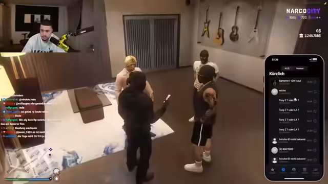 01:43:30Die Streamerin navigiert durch die Welt des GTA Roleplays und interagiert mit anderen Spielern. Sie versucht, mit einem Charakter namens Peppy zu reden, der jedoch nicht auf Anfragen reagiert, was zu Unbehagen führt. Sie ruft anonym eine Person namens Nina an und flirtet mit ihr, was zu absurden Dialogen und einem Treffen beim Cat Café führt. Die gesamte Interaktion ist von lustigem Chaos und Missverständnissen geprägt.