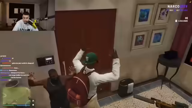 06:41:21Die Gruppe, darunter CJ, Jersey und Waldes, befindet sich in Fortnite-ähnlicher Umgebung und versucht, ein Anwesen zu infiltrieren, um Informationen über ein Attentat zu erhalten. Sie befinden sich in der Nähe von Postleitzahl 868 und strategisch planen ihren Vorgehen. Man beschließt, den Wachmann des Anwesens anzugreifen und mit einer Drohne das Gelände zu überwachen, um sich einen Überblick über die sich auf dem Anwesen aufhaltenden Gegner zu verschaffen.