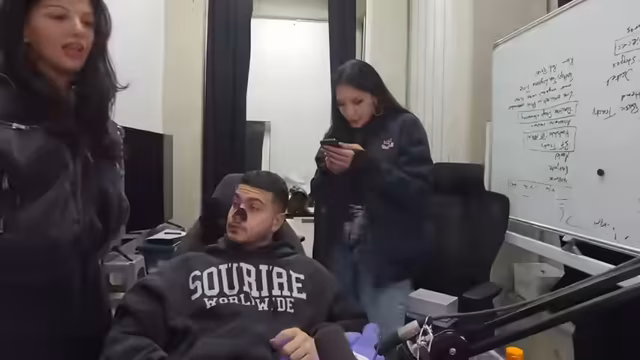 00:38:55Es wird über die neue Folge von Solo Leveling gesprochen und diskutiert, ob der Anime zu schnelllebig ist. Es wird überlegt, ob Bleach eine gute Alternative wäre. Sam bereitet eine Kosmetik-Session für Rohat vor, wobei sie nicht genau weiß, was sie tun soll. Rohat äußert sich genervt darüber, wie er von den beiden behandelt wird. Es wird über seine fehlenden Augenbrauen gescherzt. Sam beginnt mit der Behandlung, indem sie Nasen-Strips aufträgt, um Mitesser zu entfernen. Rohat äußert Bedenken bezüglich der Hygiene, da Sam zuvor ihre Füße mit einem der Produkte behandelt haben soll. Es wird überlegt, ob Rohat geschminkt werden soll, was er ablehnt. Sam desinfiziert ihre Hände und beginnt mit der Behandlung von Rohats Gesicht.